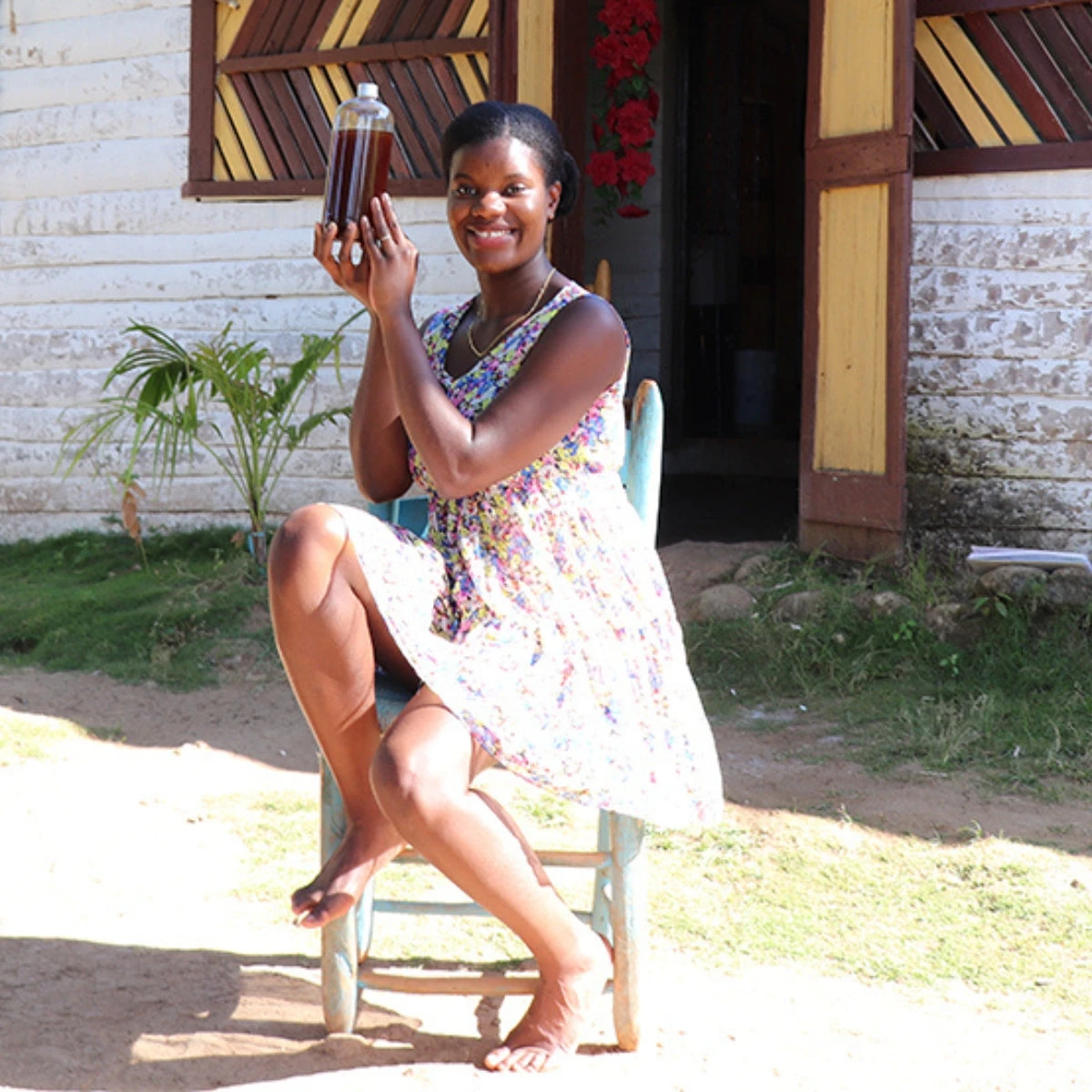 C’est dans l’arrière cour de ses grands-parents, dans le village de Piton en Haïti qu’Eva a eu l’occasion de découvrir la culture des graines de ricin. Elle a également découvert le procédé ancestral permettant d’extraire cette huile prodigieuse.