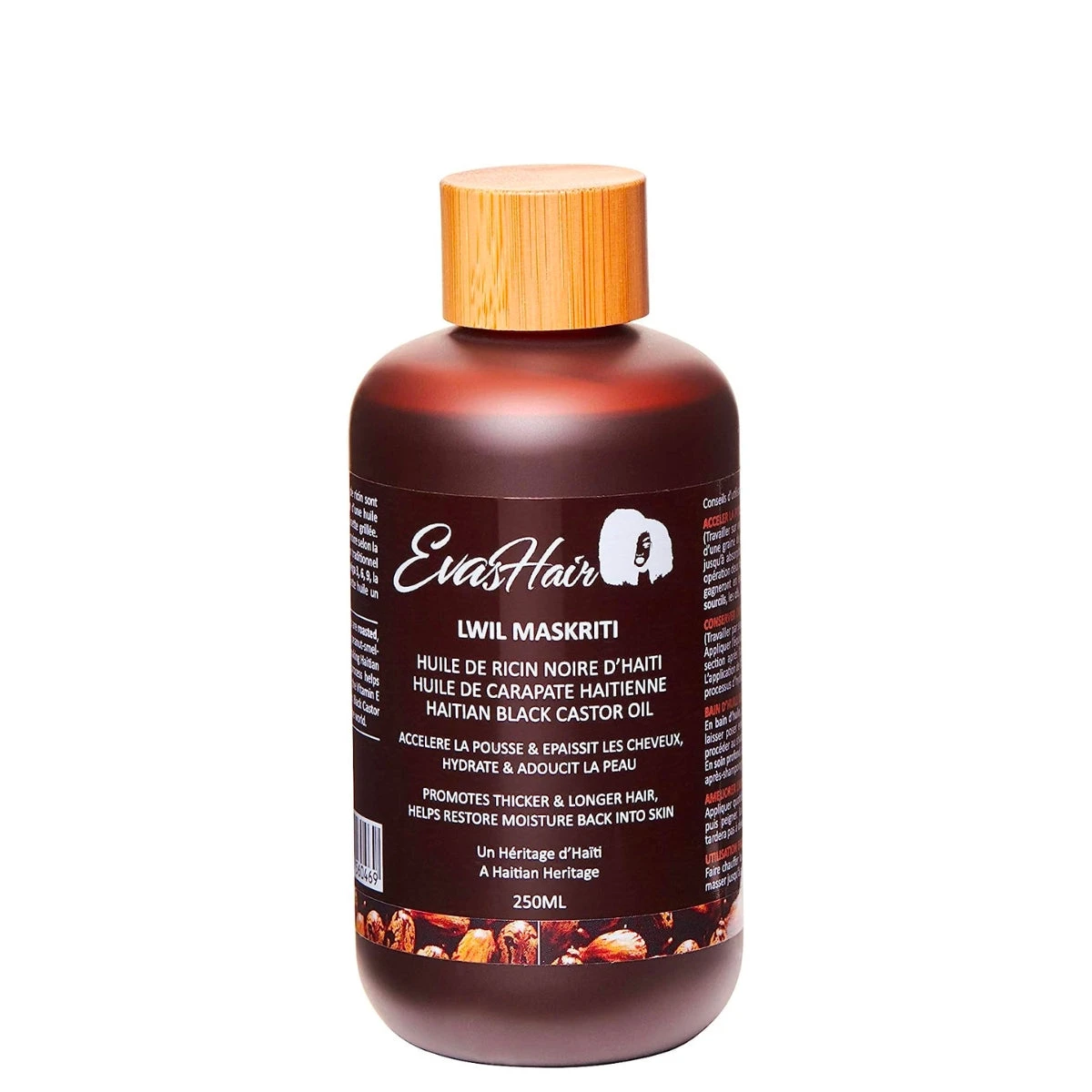 Cette huile de ricin noir d’Haïti, connue sous le nom « Lwil Maskriti« , favorise la croissance et le renforcement des cheveux, des cils, des sourcils, de la barbe des hommes et des ongles.